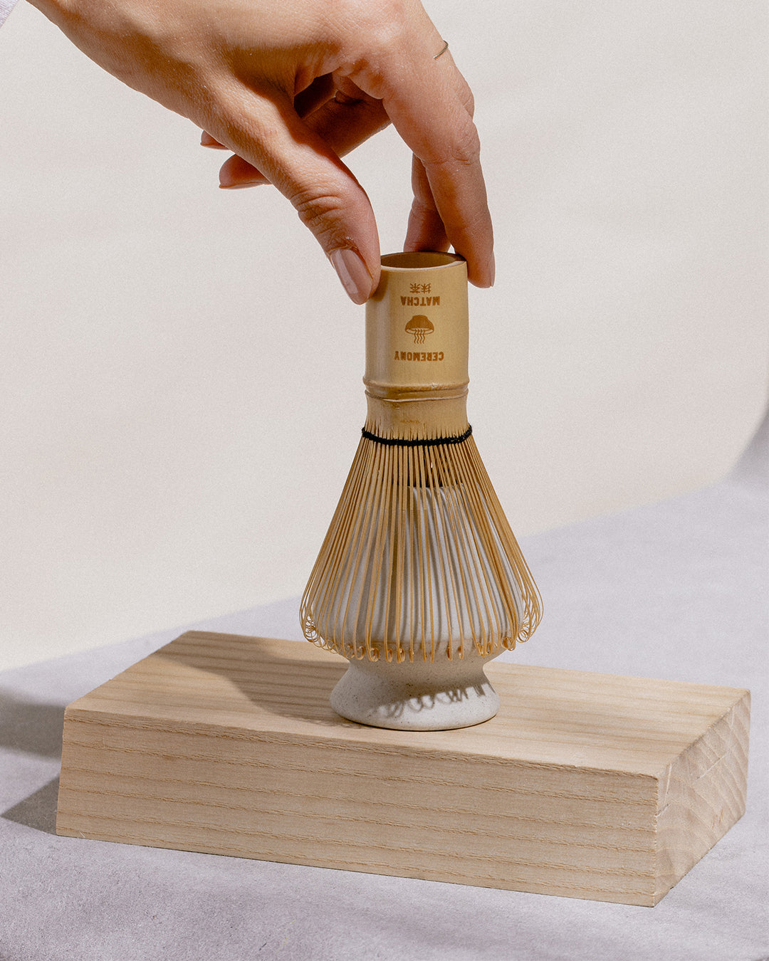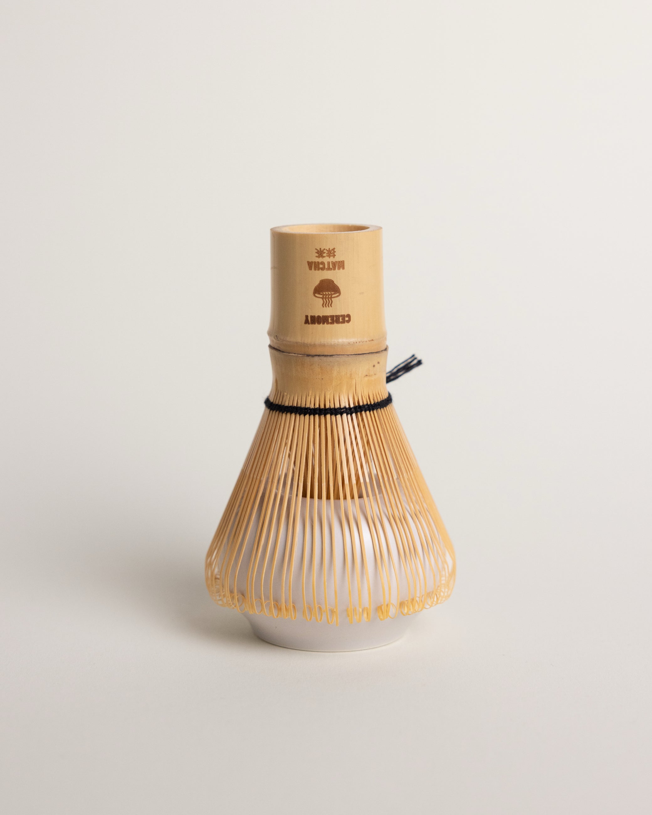 A whisk holder is called „naoshi" and is a practical and beautiful tool in a traditional matcha set. It is made out of ceramic and helps to prolong the life of your whisk. The bamboo prongs of the whisk are delicate and can begin to lose their shape over time. We recommend to wash your whisk right after use and place it over the whisk holder to dry.